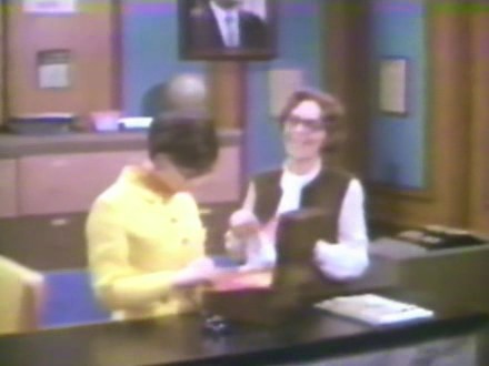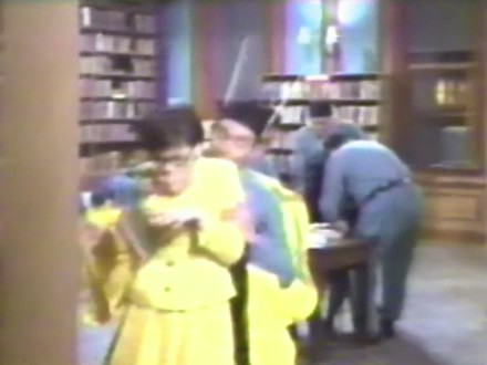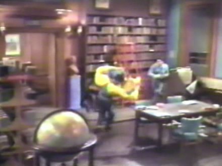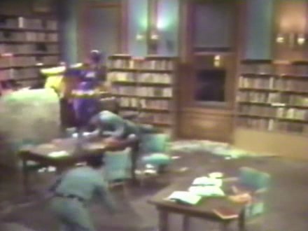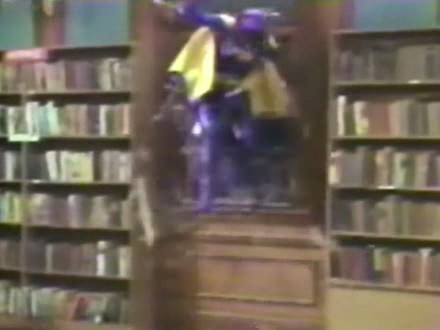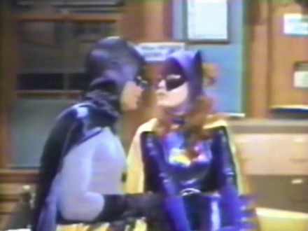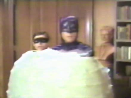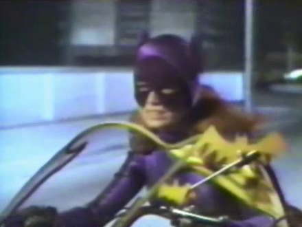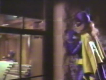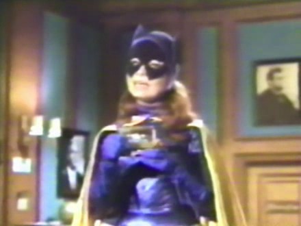 Meanwhile, Gordon is locked in the library's office by Killer Moth's henchmen, however, it is revealed there is a secret chamber within the office where she changes into Batgirl. When Batman and Robin arrive to apprehend Moth and his gang, all parties are shocked at the arrival of a Batgirl. Batman, Robin and Batgirl defeat the villains with relative ease and Batgirl vanishes without revealing her secret identity.