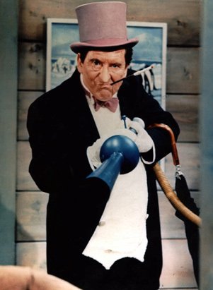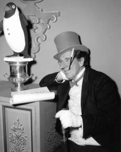 Burgess was the perfect person to play this part. He perfected the waddle, and the quack, in fact the quack sound was to actually disguise the fact that the cigarettes he was using in the long holder irritated his throat. Burgess died on September 10th, 1997, leaving behind a long list of credits. But everyone will remember him as The Penguin