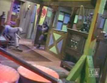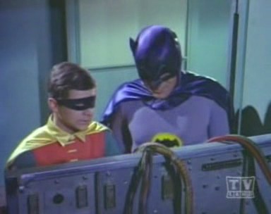 The Batman tries to track The Minstrel to his hideout by using The Batdrone Plane to trace the TV signal The Minstrel used to televise his ultimatums. But he predicts The Duo will attempt just that and decides to broadcast from his criminal studio at The Willow Street Warehouse rather than from his normal hideout. Batman and Robin later locate the warehouse by Batmobile and sneak in, but not before The Batman sprinkes a few precautions along the corridor: Adhesive Batbombs. The Dynamic Duo attempt to surprise The Minstrel but are caught and tied to a giant eletronic spit which will slowly roast them over an electric radar grill!