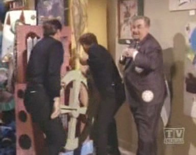 Waiting until after The Clock King has left, Batman and Robin topple the hourglass over onto its side by rocking it back and forth. Then run inside the glass until it rolls outside and smash open the glass against a truck, releasing them. The Clock King, meanwhile, is enraged on learning one of his men accidentally planted his Automatic Energy Directional Control Switch, meant for a bomb to be used in his final caper: in a clock bought by Dick Greyson's Aunt Harriet as a birthday present for Bruce Wayne!