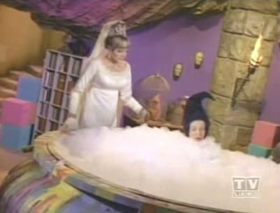The Dynamic Duo trace Marsha to the underground cave of her Aunt Hilda, where they battle Marsha's Guardians while Hilda, armed with powerful antidotes, tries to turn them into a variety of animals. But The Caped Crusader and The Boy Wonder prove a match for her every spell and The Guardians. An undaunted Marsha then renders the heroes unconscious with knockout drugs. Hilda then applies them with her strongest potion yet, which is supposed to turn them into toads! The next day, Marsha and her Grand Mogul appears in Commissioner Gordon's office bearing caged and caped toads who speak with the voices of Batman and Robin! Marsha threatens to feed the talking toads to her pet cat unless Gordon meets her demands. It turns out, however, to have been a trick: the real Batman and Robin swoop in to disarm The Grand Mogul and haul Marsha off to prison.