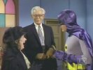 Batman is torn between whether or not to say, "I do," when all of a sudden, Alfred, disguised as British solicitor Ethelbert Soames, arrives with Aunt Harriet. They disrupt the unholy union by claiming Cooper is the one and only Mrs. Batman. Realizing she has been conned, The Diamond Queen and her Grand Mogul immediately make a break for it! Batman and Alfred speed by Batmobile to Marsha's love nest/hideaway with The Bat Antidote Kit to free Robin and the others from the love potion.