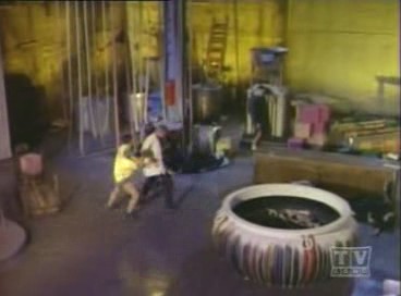 Meanwhile, Robin has reached the middle of The Catwoman's maze, where he encounters Policewoman Mooney. Batman locates Catwoman's lair at Catacombs Condominium, Subterranean Suite 6 and informs her of her betrayal by Sandman. An incensed Catwoman leads Batman to her maze, from which he emerges in no time with Robin and the missing policewoman. As Chief O'Hara and his men apprehend Catwoman, The Dynamic Duo drive The Batmobile to the secluded Batmarina, where they defect to The Batboat and speed for Pauline's island. As Pauline shows Sandman around her now abandoned noodle factory, Batman and Robin appear and engage Sandman, Snooze and Nap with a fierce fisticuffs, ending with Sandman plummeting into a noodle vat! The Duo soon discover to their surprise that J. Pauline Spaghetti, a seven-year-long insomniac, has finally fallen sound asleep on her own 2 feet! Later, at Wayne Manor, Aunt Harriet shows Alfred, Bruce and Dick her plans to make a shrubbery in the form of a maze.