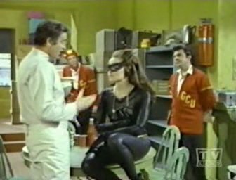 As the acid begins to spill out of the pot's spout, Batman positions his hand under the flow so that the first few drops of acid will burn away his bonds. Then, using The Batrope, he switches off the master switch. Meanwhile, Catwoman and her men have managed to steal the rare Batagonian Cat's Eye Opals from The Forever Jewel Company. They take them to French Freddy Touche, a well-known fence who runs a fencing school, in the hopes of selling them on the black market. Freddy knows that the opals are supposed to be jinxed and refuses to take them.