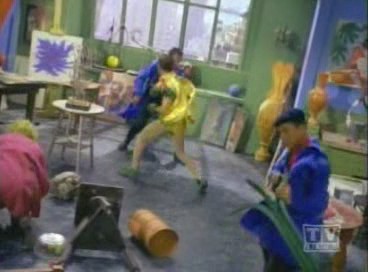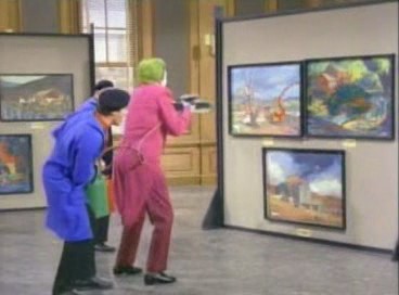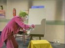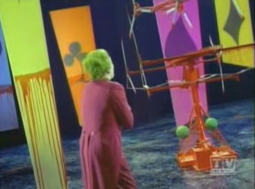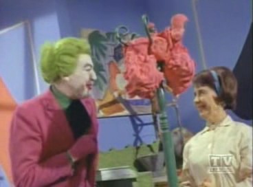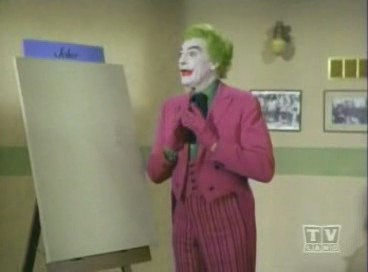 Days later, Joker enters and wins an art contest sponsored by Baby Jane Towser, a rich heiress to the paper clip fortune. He then announces that he has formed his own art school for millionaires only. Bruce Wayne decides to sign up in order to keep close watch on the cunning clown, who later kidnaps the entire class and holds them for ransom! Robin suspecting Bruce is in danger, races to the school, where he and Bruce take on Joker's men, fist-wise. But they are quickly defeated, and Bruce is tied to a chair and forced to watch Robin, who is tied to a giant mobile covered with rotating palette knives, which threaten to slice him to ribbons!