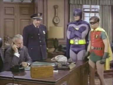 Later, at the hideout, The Dynamic Duo burst forth from The Samovar only to be immediately gassed by The Cossack Queen. Robin and Commissioner Gordon regain consciousness to learn to their consternation that they are being made into borscht by Ambassador Orloff, who is revealed to be one of Olga's Cossacks, while The Caped Crusader is targeted by Olga a one of her future husbands (as queen she's entitled to 6 husbands, and Egghead is slated to become one of them)! Outside the hideout Batgirl and Alfred finally locate the scent of Gordon's aftershave and arrive in time to rescue The Dynamic Duo and The Commissioner and make borscht out of the cossacks themselves! Just as it sems the heroes have won, Egghead reveals his secret weapon: 2 chickens who for weeks have been placed on a diet of onions. Egghead and Olga toss the chickens' eggs at Batman, Robin and Batgirl, each of which explode and emit clouds of tear gas! As The Dynamic Trio become awash in a warm sea of tears, Egghead, Queen Olga and her Cossack beat a hasty retreat.