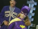Moments after Batgirl and Egghead ride off, The Dynamic Duo arrive at the bank and follow Batgirl's trail. Arriving at the hideout, in an icehouse, The Caped Crusadress finds that Egghead has lured her into a trap! She is quickly captured, bound by both hands behind her back, and forced to do a saber Batdance while Olga's Cossacks prod her with ices scimitars! The Duo arrive at the hideout, spots The Batgirlcycle, and leaps into the deperate fray to battle The Cossacks until Egghead manages to toss Batgirl into a vat of caviar to drown. While the duo rush to her aid and manage to prevent her from becoming a permanent hors d'ouerve, Egghead, Queen Olga and her Cossacks take full advantage of the distraction to make their escape, only to fall immediately into the hands of the law.