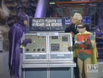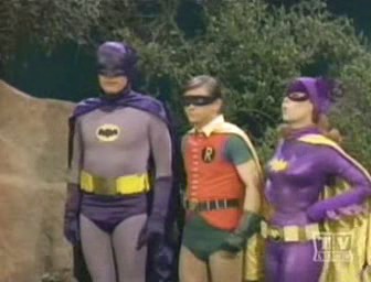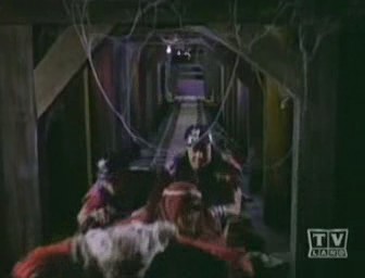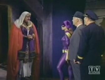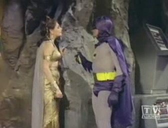 Meanwhile, Tut's mining foreman, H.L. Hunter, announces that they have struck something way too hard to break through with ordinary blasting. Tut believes they have strick Nilanium, and proceeds to blast it out himself. Just then, The Dynamic Trio appear, ready and raring to apprehend The Corpulent King, but Tut and his gang quickly hop into a nearby mining car and speed off down the tunnel. Wanting to preserve their secret identities, Batman and Robin prevent Batgirl from learning what lies within by having her remain behind to keep watch as they race down the tunnel; unfortunately, Tut and his crew has already reached the end of the shaft and crashed right through into The Batcave!!! When Batman and Robin reach the bottom of the shaft, Tut and his men confront them with their knowledge of their true identities! After a short Batfight, Batman spritzes the place with Batnesia Gas to erase whatever memory of The Batcave The Tutlings have, and then orders Alfred to bring them to the front lawn. But Tut has already escaped up the tunnel during the battle and The Caped Crusader and The Boy Wonder chase him in hopes of capturing him before he gets a chance to spill the beans, but all and alas to no avail. Just as The Nefarios Nabob is about to announce the true identities of Batman and Robin, he is done in by his own loud voice, which vibrates a rocks from the roof which knocks him unconscious. He comes to, reverts to his naturally scholarly self, and, to The Dynamic Duo's relief, has absolutely no recollection of his past experience!