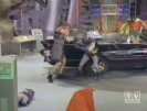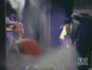 The Joker and his gang fly overhead in a homemade flying saucer to spread intergalactic terror in Gotham...