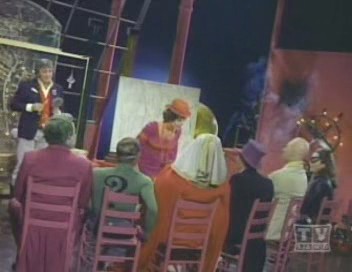 - Look carefully at the villains which Dr. Cassandra springs from prison in this episode, and you will notice that Cesar Romero, Frank Gorshin, Burgess Meredith, Vincent Price, Victor Buono, and Eartha Kitt are not in their regular roles! All were unavailable, so stunt doubles filled in for them.