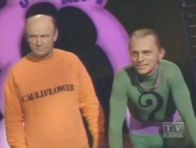 - This is the final appearance of Frank Gorshin as The Riddler, despite his claim that, "like a boomerang, I shall be back." Oh, The Riddler does return, in Episode #1722, "The Entrancing Dr. Cassandra" (March 7, 1968), but Gorshin does not!