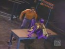 Meanwhile, The Batman solves 2 more Riddles put through by Riddler over the phone--which is plugged into radio station GTZR--and accepts his challenge to a fight that night at The Garden. There at The Garden, Aunt Harriet, having returned from a trip, greets Commissioner Gordon and daughter Barbara in the audience. As the fight begins, The Caped Crusader has the advantage over The Prince Of Puzzlers, but this quickly changes when he is pelted with metal filings by The Riddler and is immobilized by a giant electromagnet hidden under the ring, activated by Betsey. While The Batman is pounded to a pulp by Riddler, Barbara, who bore witness in the audience, leaves to become Batgirl; she finds Betsey Boldface underneath the ring and shuts off the magnet, setting Batman free. The Riddler and his gang retreat hastily and dash back to their hideout, where they are immediately captured.